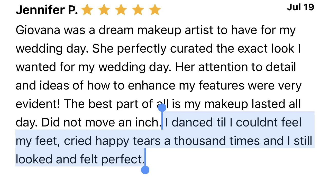 For brides that love a soft glam that doesn’t look “cakey” and last ALL NIGHT!
